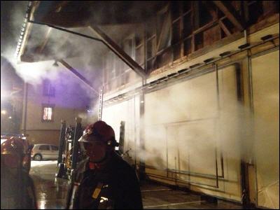 Lage beim Eintreffen: Starke Rauchentwicklung aus Türe und Dachuntersicht stellt sich als Wasserdampf heraus