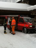 Massnahmen: Tierrettungen im Hühnerstall und Hausflur; ADL stellen für Haltelinie Wohnhaus-Stall und erstellen einer Dachöffnung, 2 Atemschutz-Trupps ausrüsten und Brandbekämpung im 1. und 2. Stock; mit Wärmebildkamera Wände und Decken kontrollieren; div. Wände und eine Decke öffnen und Glutnester löschen.