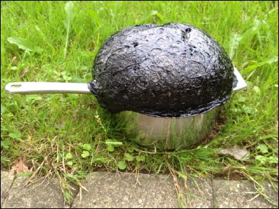 Lage beim Eintreffen: Treppenhaus und Wohnung werden gelüftet, Pfanne mit Brandgut im Freien