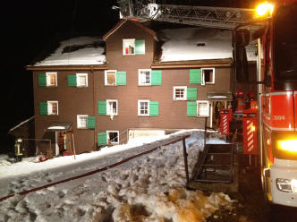 Massnahmen: restliche Bewohner evakuiren; Brandherd lokalisieren; Hausteile unter Überdruck setzen; Huebstrasse sperren und umleiten; Anleiterbereitschaft ADL erstellen; Brand löschen, Wände und Decken mit Wärmebildkamera kontrollieren und mit Kettensäge öffnen um Brandausbreitung zu kontrollieren; Boiler entleeren und die vier Hausbewohner betreuen.