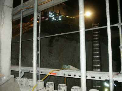 Lage beim Eintreffen: Rauch dringt aus Baustelle, 1. Untergeschoss