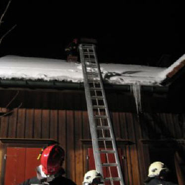 Massnahmen: Kontrolle des Kamins im Gebäude, via Handschiebeleiter Kamin vom Dach aus kontrollieren, Mit Kaminwerkzeug freimachen