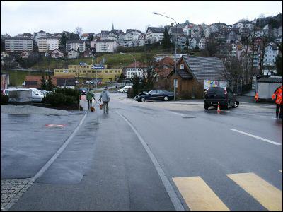 Lage beim Eintreffen: Strasse ist mit Oel-und Kühlflüssigkeiten verschmutzt