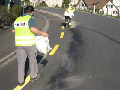 Massnahmen: Strassen sichern, Oelspur mit Bindemittel abstreuen und aufnehmen