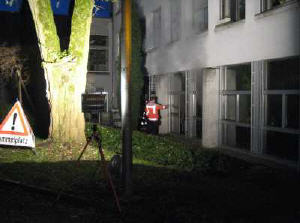 Bemerkungen: "Rauchverschluss" erstmals im Einsatz und hat sich bewährt. Schule konnte Betrieb in den oberen Stockwerken mit etwas Verspätung aufnehmen.