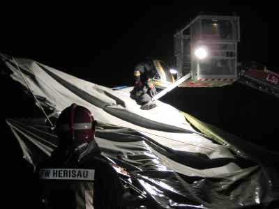 Massnahmen: erkunden, ab Flachdach Notdach mit Blachen erstellen unter Zuhilfenahme ADL