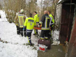 Lage beim Eintreffen: Rettungsdienst vor Ort, Liegenschaft ohne Zufahrt, steiler Wanderweg, Distanz 200 m bis zum Wohnhaus