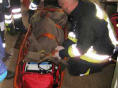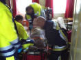 Massnahmen: Fensterflügel entfernen und Möbel verrücken, Patient in Schleifkorbtrage umlagern und durch Fenster ins Freie bringen, Transport zu Fuss zum Rettungswagen.