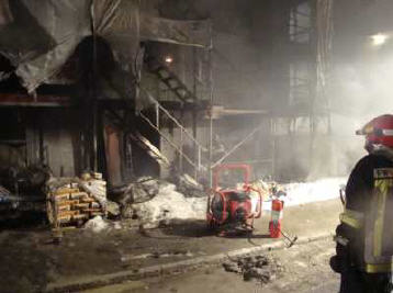 Bemerkung: Fliess-/Tropfbrand Kunststoff/Aluminium (Gerüst) mit Pulverlöscher abgelöscht