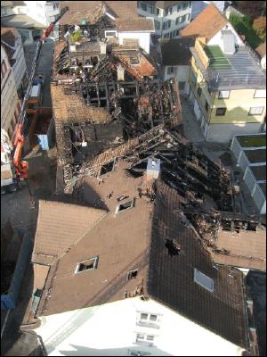 Aufgabe: Unterstützung der Dachdecker für provisorische Dachabdeckung Gossauerstrasse 10-16