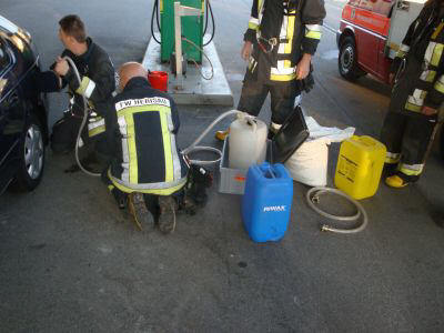 Lage beim Eintreffen: Benzin läuft aus Fahrzeugtank