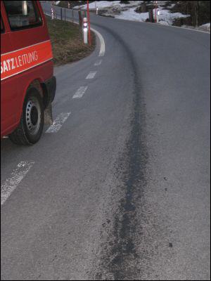 Massnahmen: Strassen mt Faltsignalen sichern, Oelspur stellenweise mit Oeltiger und von Hand abstreuen