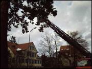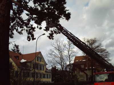 Lage beim Eintreffen: abgebrochener Ast der "Wellingtonie" hängt über Strasse/Trottoir