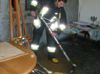 Massnahmen: Erkunden, Wasser im EG mit einem Wassersauger aufnehmen, Wasser im UG mit 2 Tauchpumpen abpumpen und mit 2 Wassersaugern aufnehmen, Grobreinigung