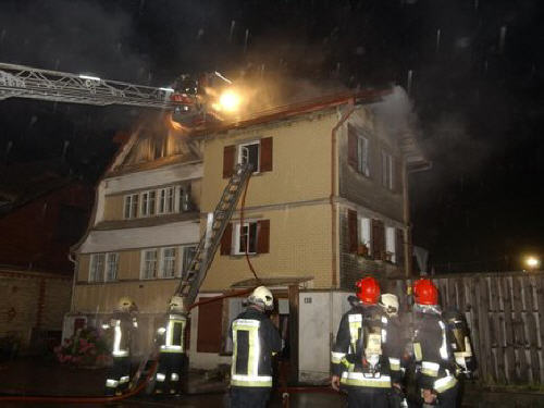 Massnahmen: Haus nach weiteren Haustieren absuchen und diese retten; Betreuen Eigentümerin und Tiere durch Alarmsamariter; Halten Nachbargebäude mit Druckleitung und Hydroschild; Haus stromlos machen; Innenangriffe im 1. bis 4. Boden mit Wärmebildkamera unterstützt; öffnen Blechdachhaut von aussen mittels ADL und Kettensäge; Ablöschen