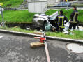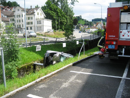 Meldung: Verkehrsunfall Fahrzeug im Bach Industriestrasse bei Firma Hänseler