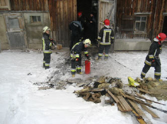 Massnahmen: Stall stromlos machen; Nachlöschen von offenem Feuer mit Handfeuerlöscher im Bereich Elektroinstallation; Kontrolle und belüften Hühner- und Schweinestall; Vorbereiten eines Wassertransportes (Länge 500 m; Höhendifferenz 35 m) auf Abruf; Glutnester suchen und nachlöschen mit Schnellangriffsleitung/Kübelspritze; Hohlräume öffnen und mit Wärmebildkamera kontrollieren
