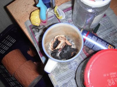Massnahmen: AS Trupp mit Schnellangriffsleitung und Wärmebildkamera ausrüsten, erkunden, Bewohner hat Papierbrand in Tasse selber gelöscht, mit Ueberdrucklüfter Zimmer entrauchen