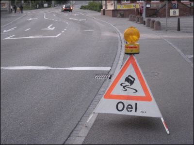 Massnahmen: Strassen und Kreuzungen sichern, Oelspur mit Bindemittel mittels Oeltiger abstreuen