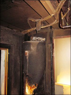 Bemerkungen: Starker Rauchaustritt aus Dunstrohr im Dachbereich infolge geschmolzener Santärleitungen.