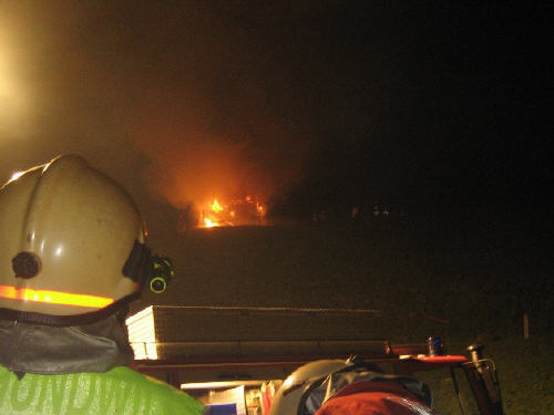 Lage beim Eintreffen: Feuerwehren Hundwil und Urnäsch (Nachbarhilfe) vor Ort