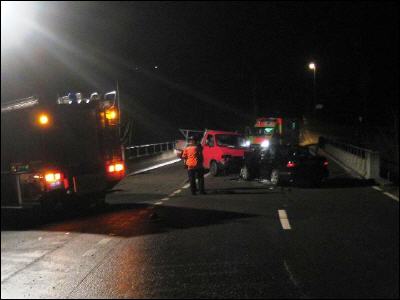 Massnahmen: Unfallstelle beleuchten, Fahrzeuge auf Oelverlust kontrollieren, Verkehrsabsicherung verbesseren, Mithilfe bei der Fahrzeugbergung und Strasse reinigen.
