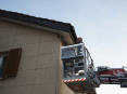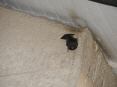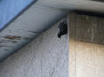 Lage beim Eintreffen: Vogel ist mit linkem Fuss in Fassaden-Stoss eingeklemmt