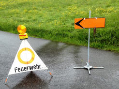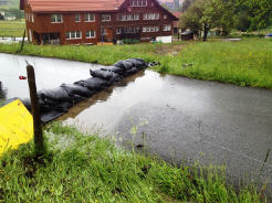 Massnahmen: Buechschachen-Strasse sperren und umleiten, Wasserlauf mit Sandsäcken umleiten; Keller auspumpen