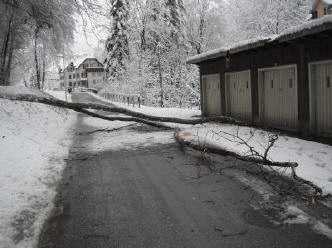 Lage beim Eintreffen: Baum liegt auf Strasse, Strasse nicht mehr passierbar.
