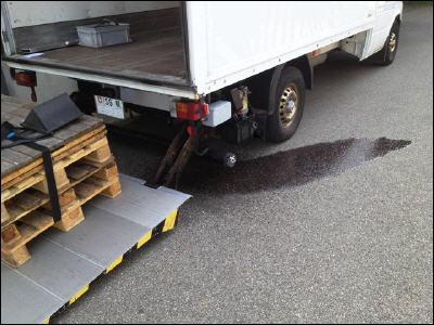 Meldung: Schlauchplatzer an Hebebühne, Hydrauliköl auf Strasse