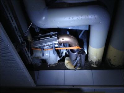 Lage beim Eintreffen: Hauptwasserhahn durch Bewohner geschlossen, Wasser läuft durch Decke in UG, Beschlagene Scheiben in Bibliotheksraum, Wasseraustritt bei Reparaturstelle Warmwasserleitung