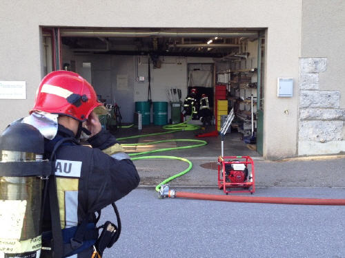 Massnahmen: erkunden; angrenzende Gebäudeteile zum Schutz in Überdruck versetzen; Abluftöffnung für Brandrauch bestimmen und öffnen; UG stromlos schalten, Löschangriff unter Überdruckbelüftung; Nachkontrolle mit Wärmebildkamera; Wasseraustritt aus Kunststoffleitungen stoppen; Entrauchung mit Hilfe Sauglüfter und Lutten