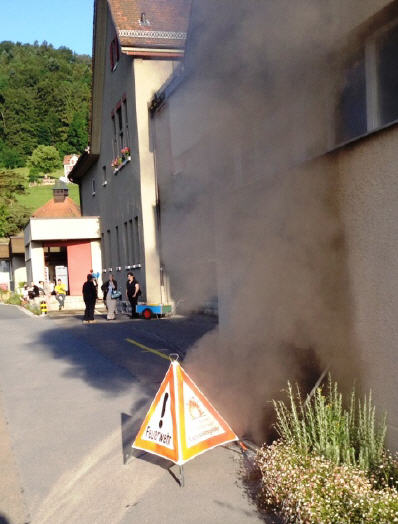 Lage beim Eintreffen: Rauch aus UG