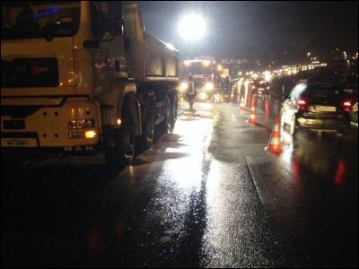 Lage beim Eintreffen: Lastwagen steht am Strassenrand; kein Rauch mehr erkannbar; Öllache läuft über Strasse; starker Feierabendverkehr.