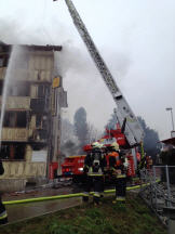 Bemerkungen: mehrere Nachkontrollen mit Wärmebildkamera; Die beiden zusammengebauten Häuser weisen verschiedene Durchbrüche auf, die aufgrund der Unbewohnbarkeit vorgenommen wurden. Dies begünstigte die Rauch- und Brandausbreitung zusätzlich