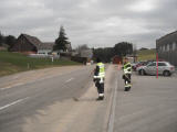 Massnahmen: Fahrbahn mit Bindemittel abstreuen, Aufgebot Strassenreinigungsfirma zur Strassenreinigung