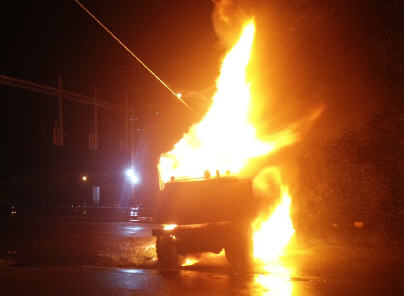 Meldung: Gleisbagger entzündet, Bahnhof Herisau