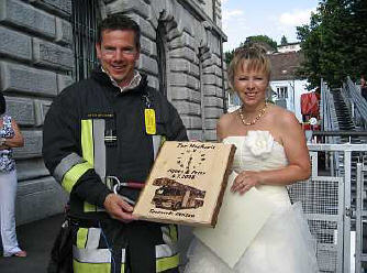 Am Freitag 4. Juli 2008 gaben sich Agnes Hautle und Peter Bruderer auf dem Zivilstandsamt Herisau da JA-Wort. Unser Materialverwalter musste sich zusammen mit seiner Agnes durch einen Parcour kämpfen. Das Geschenk - eine gravierte Holzuhr - wurde dem frischvermählten Paar durch den Präsidenten des Feuerwehrverein Herisau Beat Metzger überreicht.
