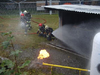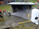Brandhaus Ob beim korrekten Öffnen der Tür oder beim Einstieg über die Leiter war immer Fingerspitzengefühl gefragt. Hitze und der Rauch waren real und auch der Wasserdampf des Löschmittels schlug zurück.