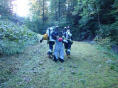 Rettungen Die Absprachen am Anfang entschieden über das weitere Vorgehen im Einzelfall. So konnten die zu rettenden Puppen unterschiedlichste Tragarten erleben, welche sich über eine Distanz von 180 Meter pro Weg und einer Höhendifferenz von ca. 40 Meter erstreckten.