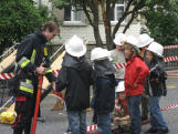 Als Feuerwehrleute durften die Kinder einmal vom Hydrant aus eine Leitung bauen, mit dem Strahlrohr den Ball in das Loch spritzen, das Atemschutzgerät kennen lernen, mit einer Atemschutzmaske den Plüscht-Teddybären aus dem dunklen und engen Labyrinth retten. Zudem lernten die Feuerwehr-Kids verschiedene Feuerwehrfahrzeuge und deren Zweck kennen und konnten von der Autodrehleiter aus über die Dächern von Herisau herunterschauen