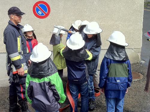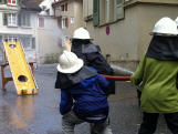 Als Feuerwehrleute durften die Kinder einmal vom Hydrant aus eine Leitung bauen, mit dem Strahlrohr den Ball in das Loch spritzen, das Atemschutzgerät kennen lernen, mit einer Atemschutzmaske den Plüscht-Teddybären aus dem dunklen und engen Labyrinth retten. Zudem lernten die Feuerwehr-Kids verschiedene Feuerwehrfahrzeuge und deren Zweck kennen und konnten von der Autodrehleiter aus über die Dächern von Herisau herunterschauen