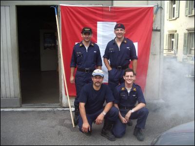 stehend: Roger Schläpfer, Gerhard Kuchler, beide Feuerwehr Herisau kniend: Ueli Reifler, Feuerwehr Hundwil; Pascal Breu Feuerwehr Oberegg-Reute