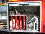 6 kVA Elektroaggregat, 2 x 1000 W Scheinwerfer am Korb, Turbo-Lüfter mit 60'000 m3 / h Leistung, div. Rettungsmaterial, Rollgliss, 3 Atemschutzgeräte, Wasserwerfer 1600 l / min, etc.