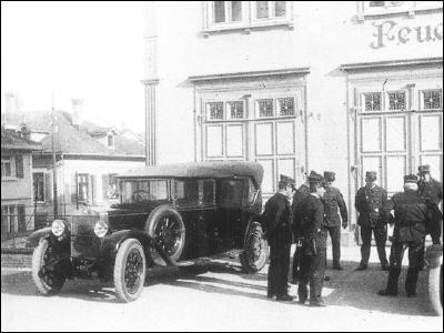 Ersteinsatz- und Zugfahrzeug. Das erste Feuerwehrauto diente insbesondere der ersten Telefongruppe und das Kantonspolizeiamt gestattet Geräte-/Leiterwagen und die Motorspritze an das Fahrzeug anzuhängen. Vorne rechts am Auto sei jedoch ein Täfelchen „obacht Anhänger!“ anzubringen. 1936 wird aus Kostengründen auf ein Nachrüsten mit dem doppeltönigen und optischen Signal nach Bundesverordnung vorderhand verzichtet. Jedoch wird ein Täfelchen mit der Aufschrift „Feuerwehr!“ angebracht um Anständen beim Vorfahren vorzubeugen.