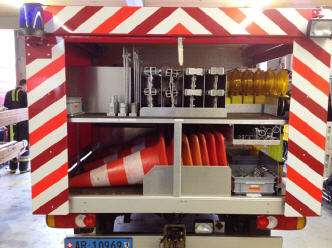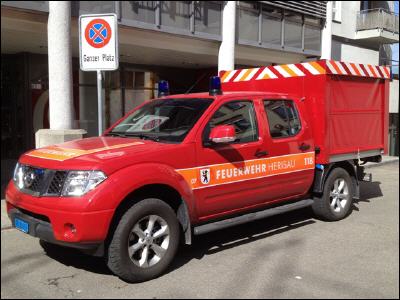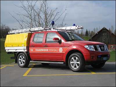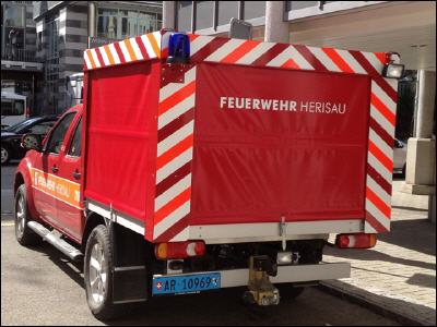 Standort des Fahrzeuges im Depot West. Das ehemalige Fahrzeug der integrierten Betriebsfeuerwehr Huber + Suhner AG, stand der Feuerwehr Herisau von 2008-2011 leihweise zur Verfügung. 2012 konnte es als neues Verkehrsdienstfahrzeug übernommen werden und wurde mit einem zweckdienlichen Aufbau versehen.