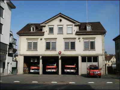 Das 1886-88 erstellte Feuerwehrhaus platzt jedoch aus alle Nähten, so dass aus Platzgründen diverse Gerätschaften und Materialien unwirtschaftlich in 7 Aussendepots (ehemalige Spritzenhäuser) untergebracht werden mussten. Für Einsatzfahrzeuge und Anhänger muss in der Nachbarschaft des Feuerwehrhauses zudem private Garagen hinzugemietet werden.