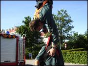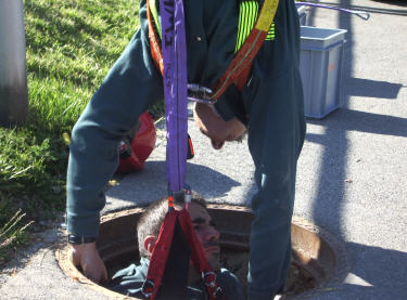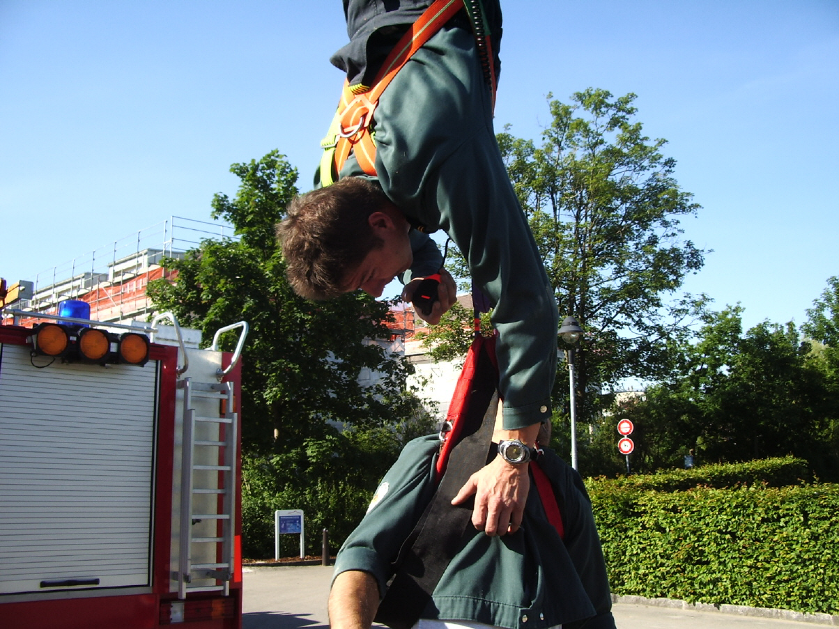 Frage an das Kommando: Wie rettet man eine Person aus einem Schacht, in dem kein Platz für einen Rettungsschlitten ist? --> Kopfüber natürlich