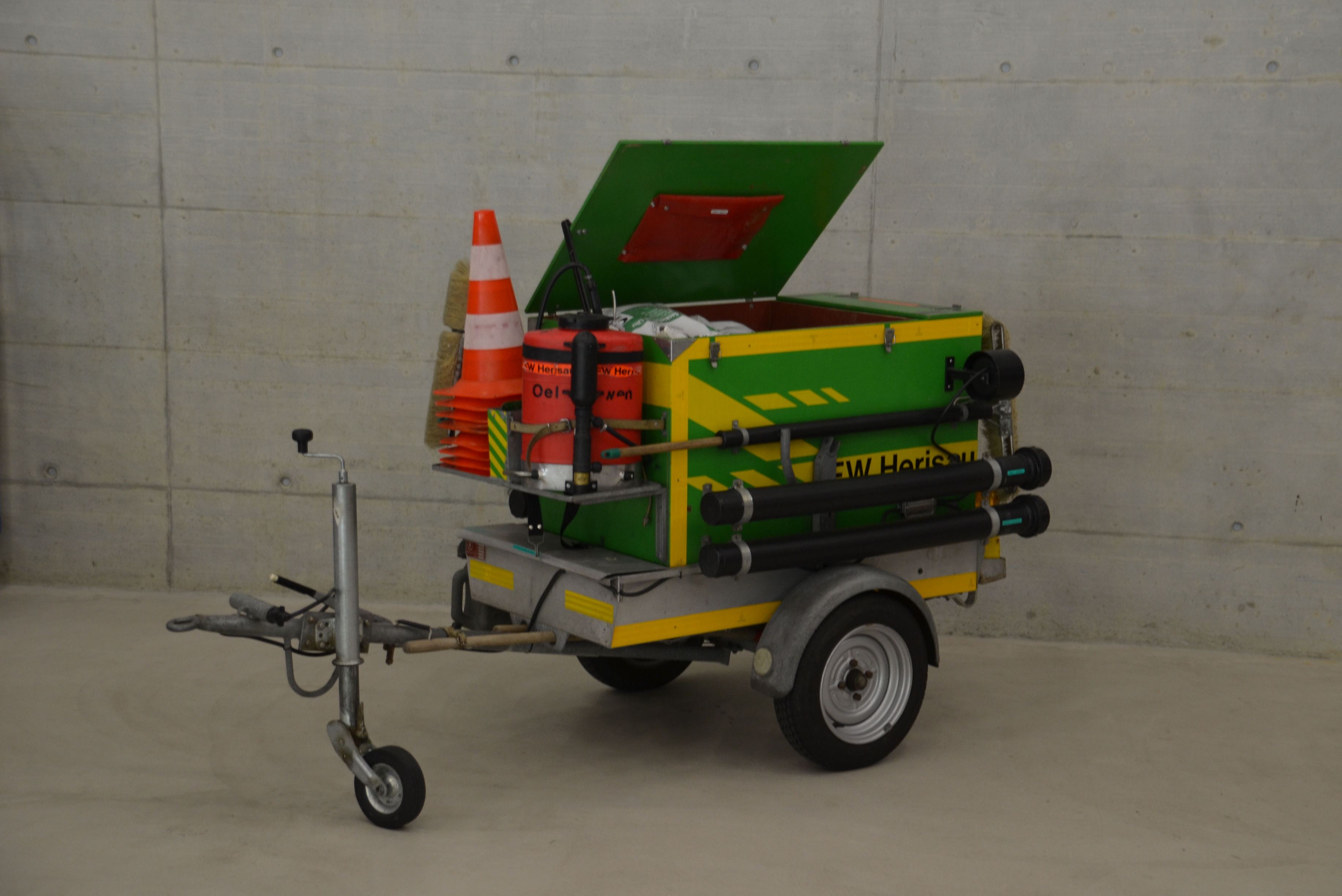 Beladung   Verkehrs – und Strassensicherungsmaterial, diverse Besen und Schaufel, Ölbindemittel, Birchmeierspritze mit "Orval"