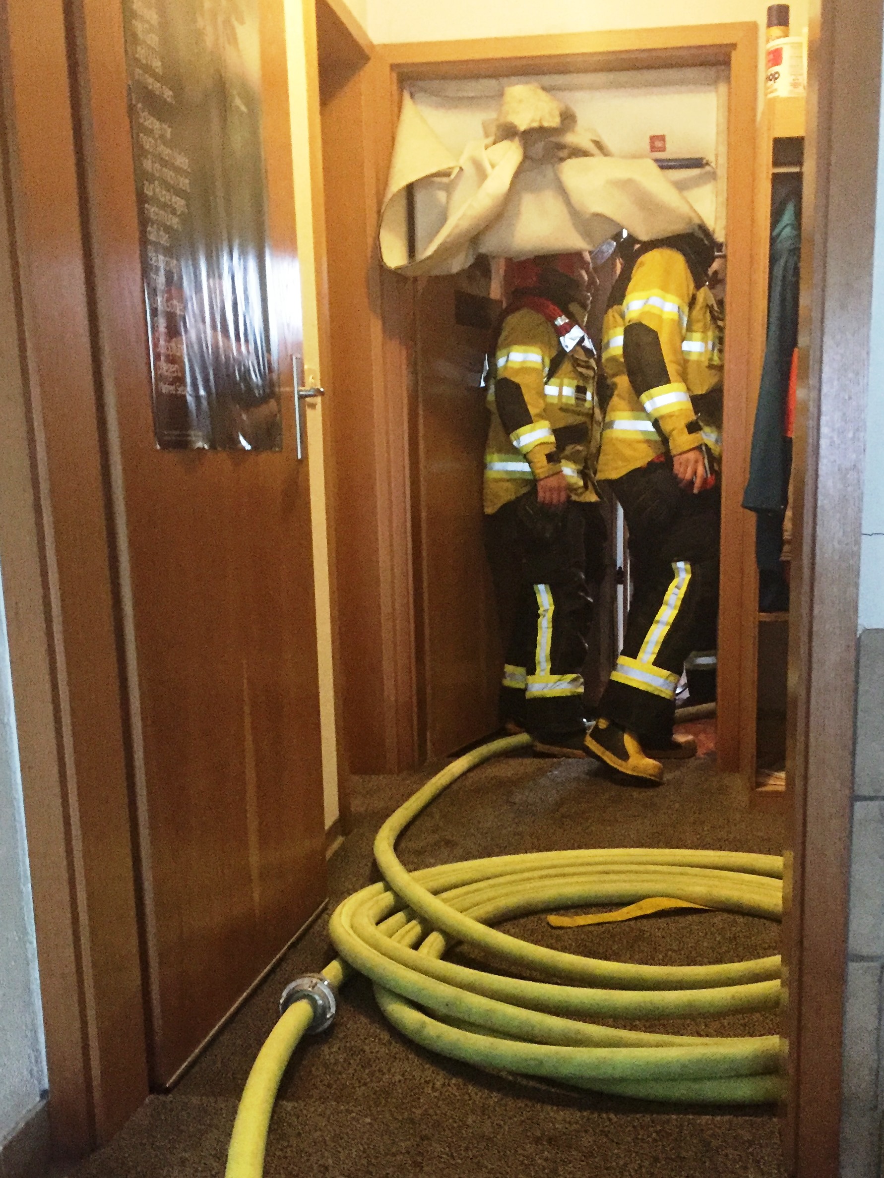 Lage beim Eintreffen: Zimmertüre geschlossen, Zimmer voller Rauch